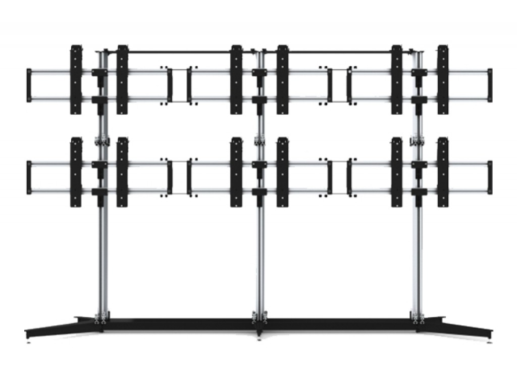 This model features tool-less adjustment of depth and height at each corner to ensure perfect display alignment. Each module supports up to 40 kg and features a professional aluminum and anthracite grey finish.