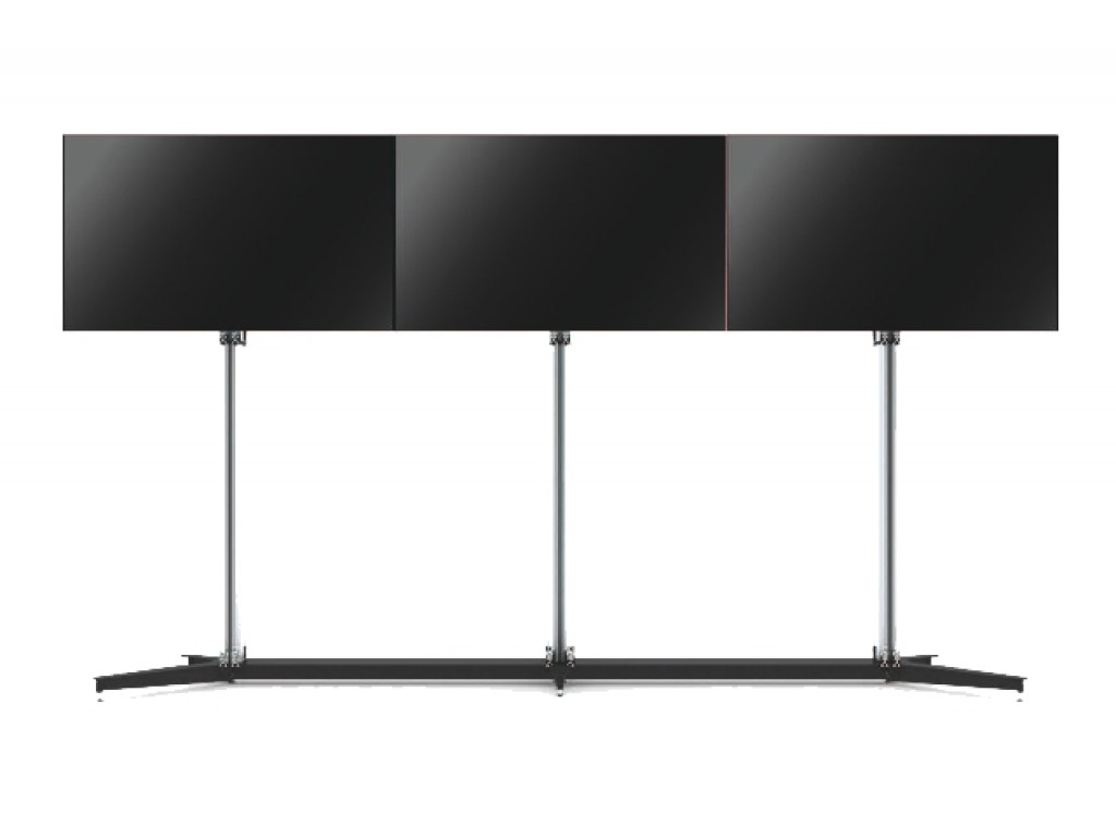 This model features tool-less adjustment of depth and height at each corner to ensure perfect display alignment. Each module supports up to 40 kg and features a professional aluminum and anthracite grey finish.